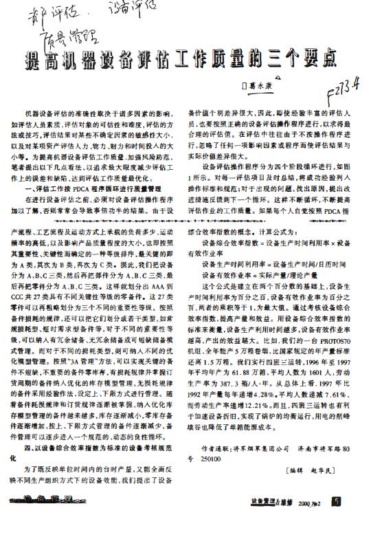 导读:机器设备评估的准确性取决于诸多因素的影响,如机器设备评估公司评估人员素质,评估对象的可估性和难度,设备评估公司评估的方法或技巧,评估结果对某些不确定因素的敏感性大小,以及对某项资产评估人力、物力、财力和时间投入的大小等。为提高机器设备评估工作质量,加强风险防范,笔者提出以下几点看法,固定资产评估以追求最大限度减少评估工作上的误差和缺陷,达到评估工作质量最优化。