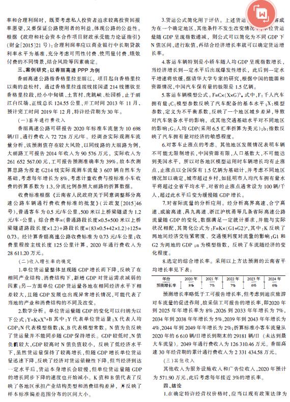 导读:目前PPP项目是政府和社会资本有效合作的主要模式,特许经营权是政府对社会资本参与者补偿、提高投资效益和提高公共服务水平的主要形式,对特许经营权评估,经营权评估,专利资产评估,损失评估的合理定价关系到政府、私人投资者及公众使用者等多方利益。评估事务所,资产评估事务所在论述特许经营权影响因素理论的基础上,以云南香丽高速特许经营权定价为案例,具体的把理论和实践结合起来,对收费公路的特许经营权科学定价的把握操作有重要意义。