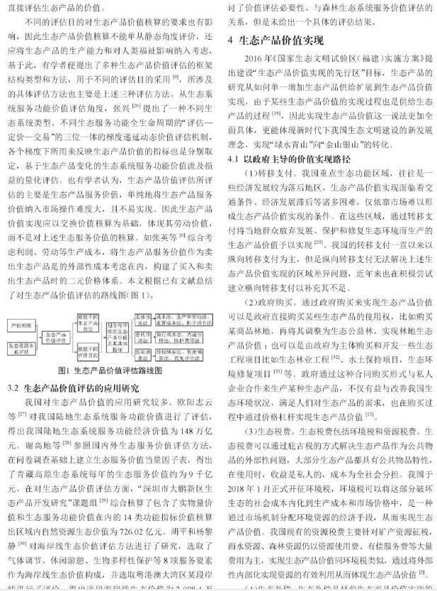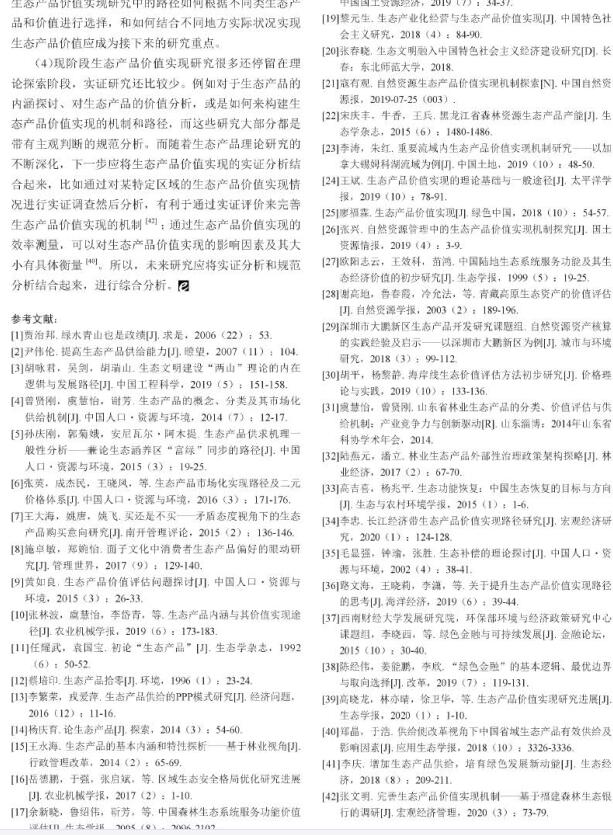 导读:生态产品价值实现是践行“绿水青山就是金山银山”的重要举措。近年来国内学术界对生态产品价值及实现机制的研究逐渐增多,推动了财产损失评估生态产品价值理论研究。论文从生态产品的概念及内涵、生态产品价值基础及构成、生态产品价值评估、森林资产评估生态产品价值价格评估机构实现等方面对现有文献进行系统梳理。研究发现:我国生态产品的概念尚存在争议,但基本内涵基本相同。生态产品的价值理论基础主要有劳动价值论和效用价值论;树木评估生态产品价值评估方法主要采用直接市场法、间接市场法或假想市场法等;生态产品价值实现机制主要有转移支付、政府购买、生态补偿、市场交易、绿色金融等,未来研究应