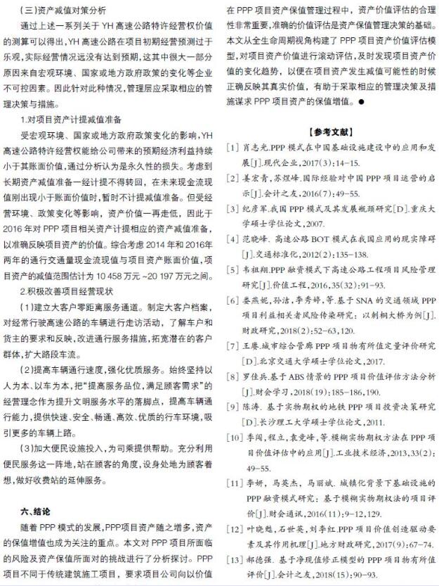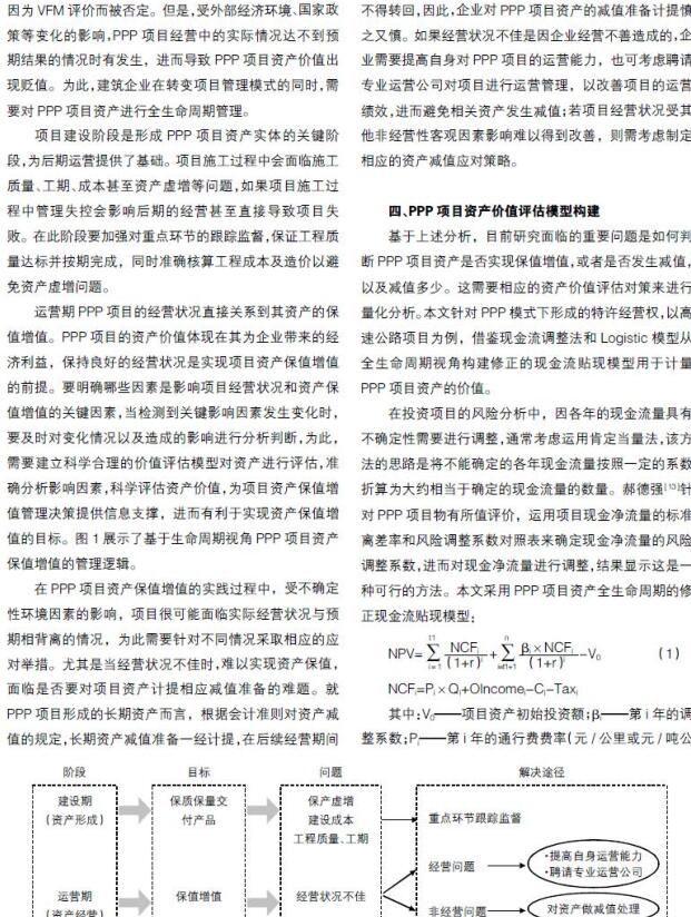 导读:近年来,企业评估随着PPP模式在我国推广及应用,PPP项目资产的管理,尤其是资产保值增值问题损失评估已引起学术界和业界的重视。文章采用规范研究与案例研究相结合的方法对如何实现PPP项目资产的保值增值展开理论分析和实践研究,阐明PPP项目管理模式应以价值为导向,构建基于生命周期视角的PPP项目资产保值增值管理框架,用于辅助资产管理决策。通过经营权评估构建基于生命周期的修正现金流贴现模型对PPP项目资产价值进行滚动评估,采用Logistic模型对高速公路通行交通量进行预测,运用肯定当量系数方法测算现金流调整系数。文章结合具体案例进行品牌资产评估实证分析,为PPP项目资产保值增值管理理论风险评估和实践提供借鉴。