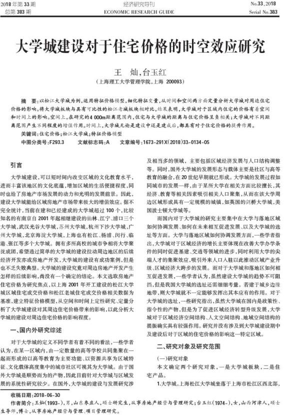 导读:企业评估机构以松江大学城为例,运用特征价格模型,细化特征变量,从时间和空间两方面定量分析个人房产评估大学城对周边住宅价格的影响。将大学城板块与具有可比性的松江老城板块相对比,结果表明,大学城对于区域内住宅的价格有着空间和时间上的影响。空间上,在研究的4000m距离范围内,住宅与大学城的距离与房子估价住宅价格呈负相关;大学城对不同距离范围产生不同程度的增值作用。时间上,大学城无论是建设中还是建成后,都具有对于住宅价格厂房价值评估的提升作用。