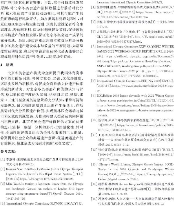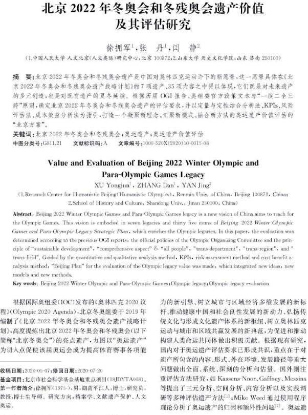 导读:北京2022年冬奥会和冬残奥会遗产是中国对奥林匹克运动许下的新愿景,这一愿景具体在《北京2022年冬奥会和冬残奥会遗产战略计划》的7项遗产、35项内容之中得以无形资产评估体现,它们既是对未来遗产的多元创造,也是对既有遗产的夏冬延续。根据历届OGI报告、奥组委官方政策文本与“一续二全三跨”原则,五大资产评估机构确定北京2022年冬奥会和冬残奥会遗产的评估要求,并以定量与定性结合分析法、KPIs、风险评估法、成本效益分析法为指引进行知识产权资产评估、特许经营权价值评估,打造一个凝聚新理念、汇聚新模式、融合新方法的奥运遗产价值评估的“北京方案”。