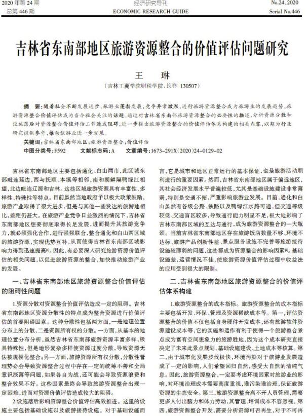 导读:随着社会不断发展进步,旅游业蓬勃发展,竞争异常激烈,进行旅游资源整合成为旅游业的发展趋势。旅游资源整合价值评估所涉及的苗木评估、鱼塘评估、工艺品评估、财产纠纷评估成为当今社会关注的话题。通过对吉林省东南部旅游资源整合的必要性的描述,分析资源分散和设施落后对资源整合价值涉及的码头评估、树林评估工作造成阻碍,进一步提出旅游资源整合的价值评估体系构建的相关内容,以期为行业研究提供参考,推动旅游业进一步发展。