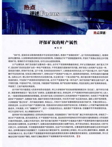 导读: 风险评估公司,专利价值评估公司虽然探矿权价值是勘查投入的劳动和资本创造的,但是我国现行"探矿权价款"通过市场形成的价格,财产损失评估却暗含了一部分矿产资源价值。因为如前所述,矿产资源资产的探矿权评估价值,是由真原来所固有的天然形成的价值和勘查投入所创造的价值共同组成的。当通过市场评估时,探矿权价值只能用矿产资源资产采矿权评估价值减去代表矿产资源所固膏价值的实收资源税和资源补偿费而得。在这种情况下,如果实收的资源税和资源补偿费不到位,真不到位的部分,便会自动进入探矿权价款之中。这样的结果,经营权评估不仅使国有资源资产受到损失,也会产生许多副作用。主要是国有资源权益被社会资本权益所侵占。这种情况被地方政府看到了,又会助长他们掌控探矿权,造成职能上的错位,所以必须认真研究解决。最重要、最有效的解决办法,是让代表矿产资源国家所高权权益的资源税和资源补偿费收取的标准到位,这是釜底抽薪。所以正确定位探矿权的财产属性,有助于正确处理好矿产资源勘查开发中的经济关系。