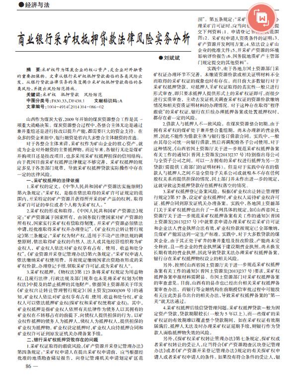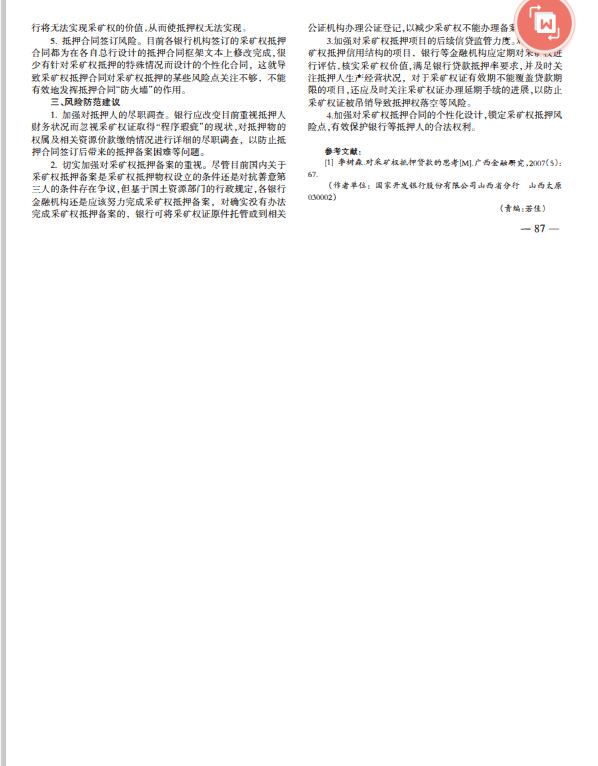 导读:品牌评估公司,房屋估价公司从银行采矿权抵押贷款面临的各类凤险出发,从银行贷款法律实务的角度揭示采矿权抵押贷款面临的各类风险,并提出风险防范措施,加强对采矿权抵押项目的后续信贷监管力度。探矿权评估对于采用采矿权抵押信用结构的项目,银行等金融机构应定期对采矿权进行评估,核实采矿权价值,价格评估公司满足银行贷款抵押率要求,并及时关注抵押人生产经营状况,专业评估公司对于采矿权证有效期不能覆盖贷款期限的项目,还应及时关注采矿权证办理延期手续的进展,以防止采矿权证被吊销导致抵押权落空等风险。采矿权作为煤炭企业的核心资产,自然资源评估,特许经营权评估企业对外融资的重要担保物。